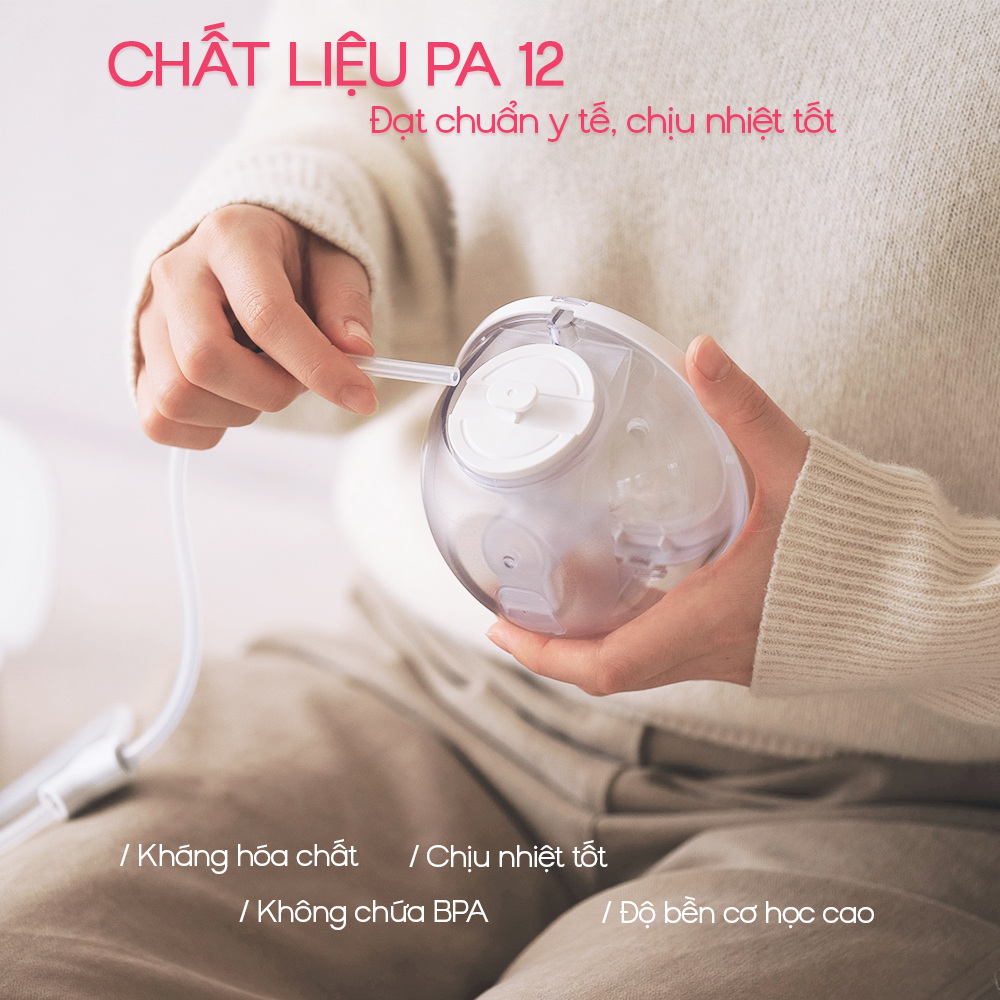 Điều này giúp mẹ tháo lắp trong chưa đầy 5 giây, nhanh gấp nhiều lần so với các cốc hút truyền thống 4–5 chi tiết. Mẹ sẽ không còn cảm giác “mệt mỏi” khi nghĩ đến cảnh rửa đồ hút sữa sau mỗi cữ, thay vào đó là một quy trình nhẹ nhàng, nhanh chóng và tiết kiệm thời gian.